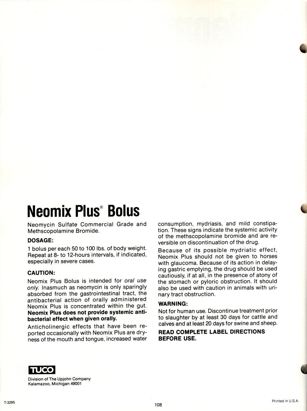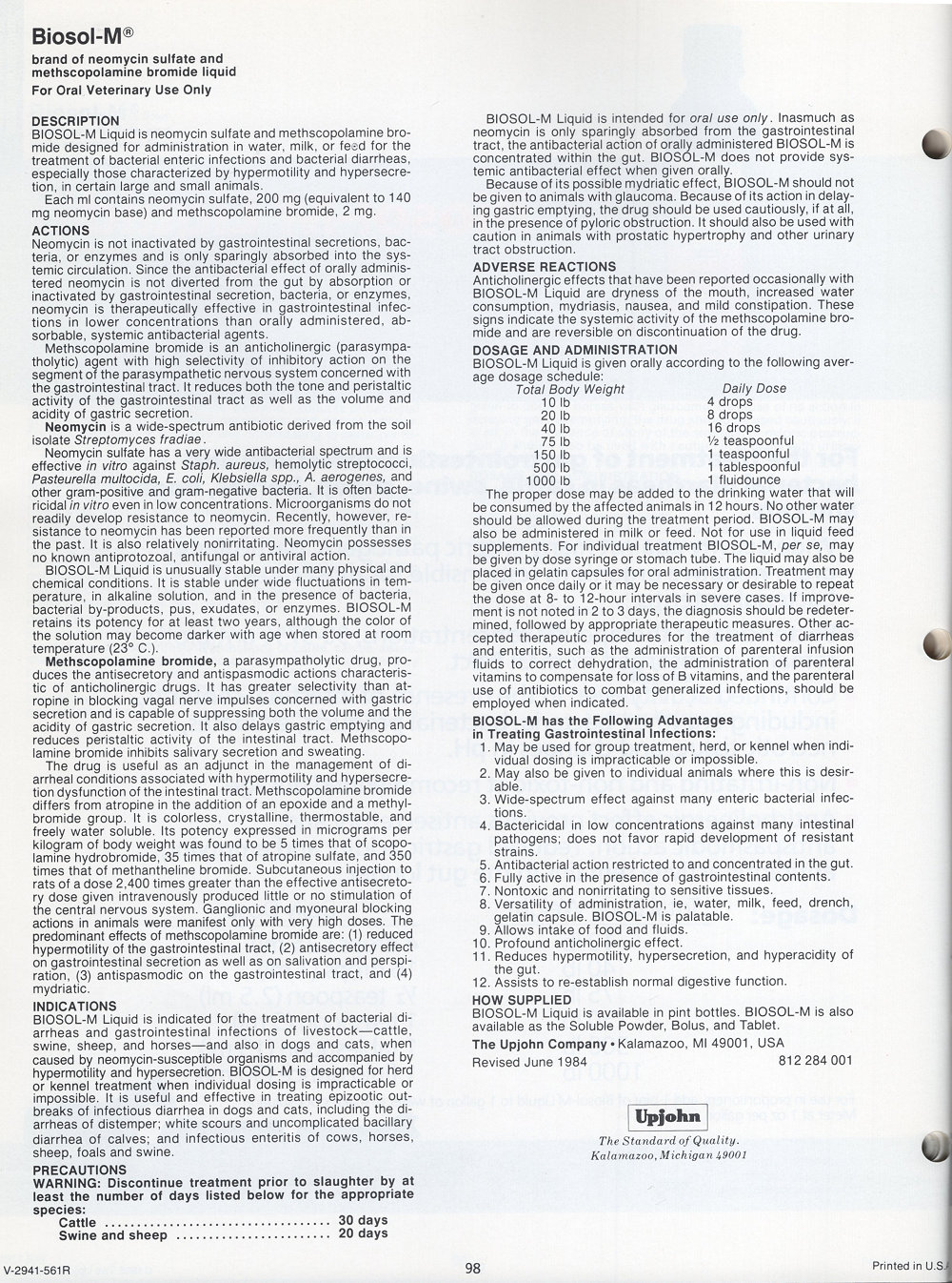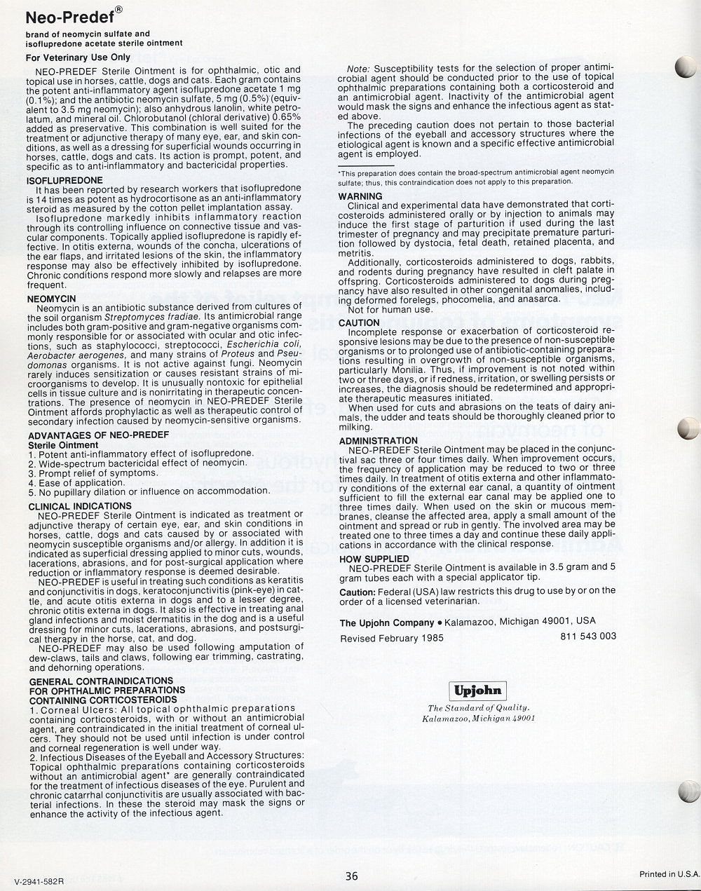 1985 Upjohn Veterinary Products Catalog