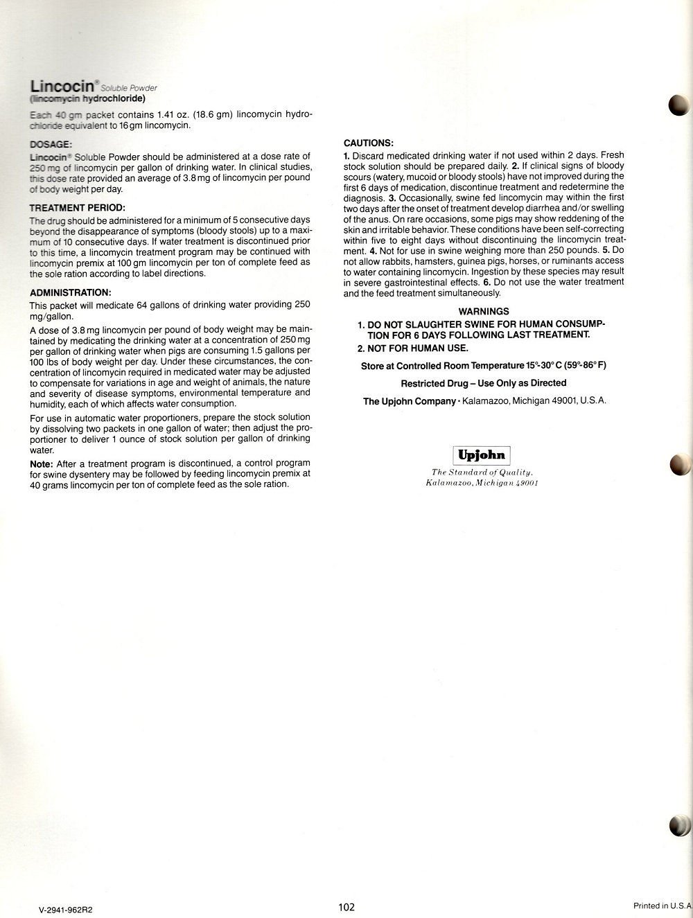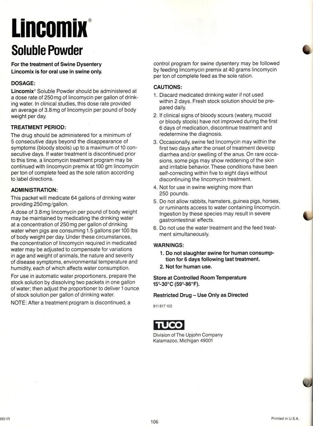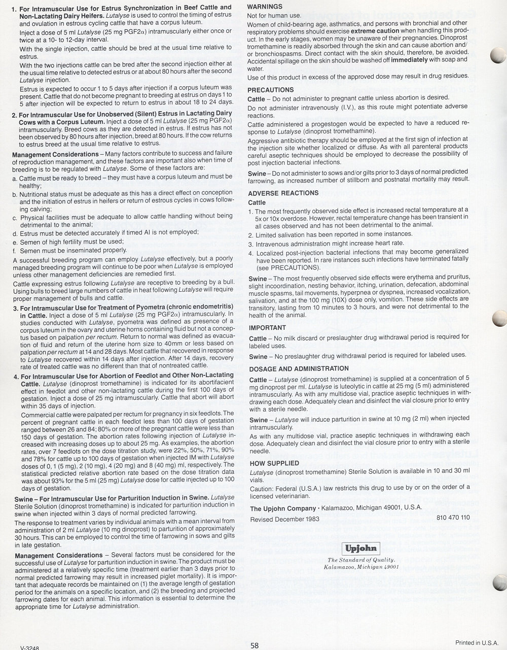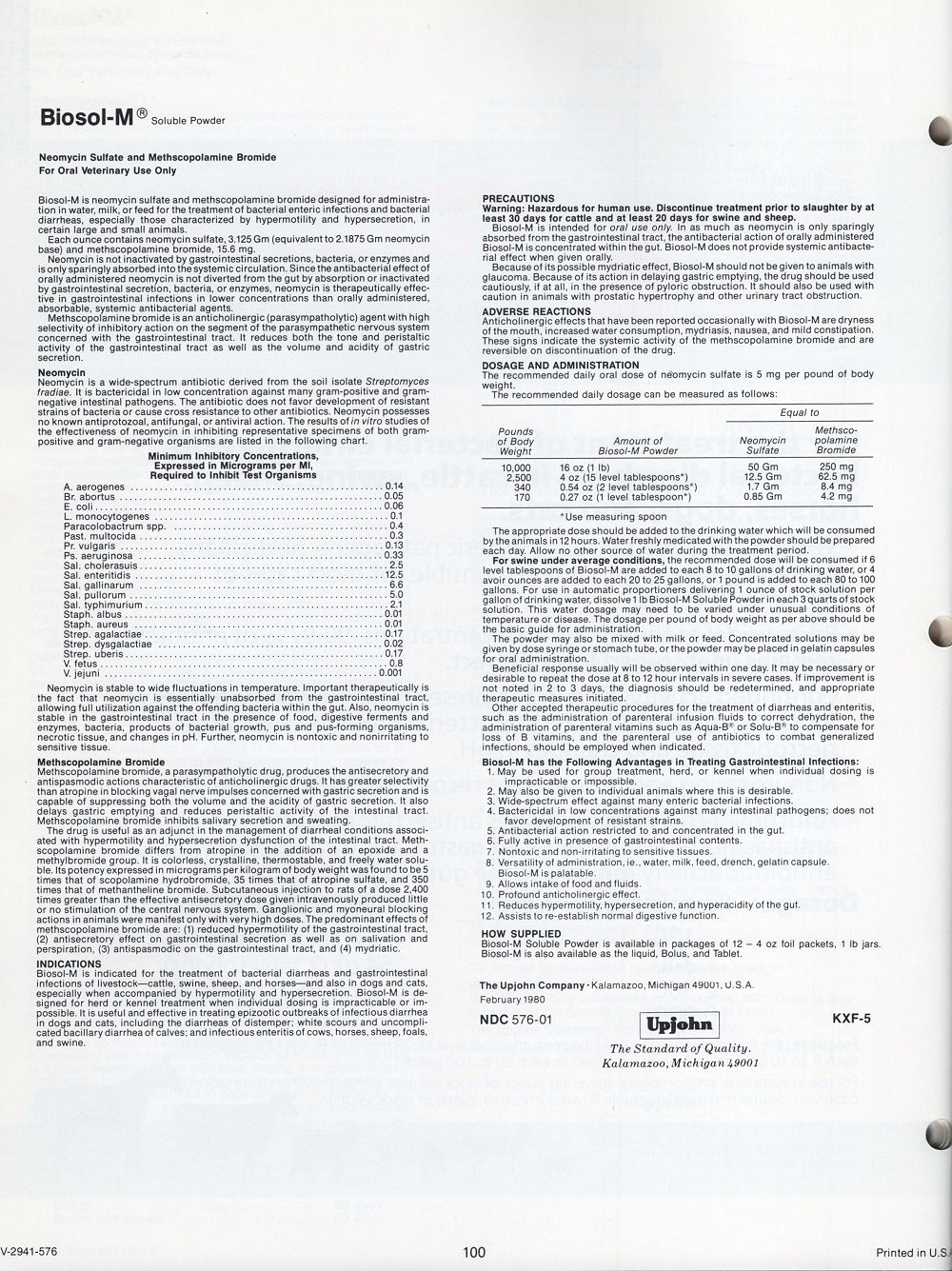 1985 Upjohn Veterinary Products Catalog