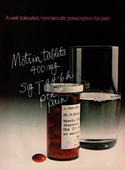 Here's a 1974 Motrin 400 mg Tablets advertisement for medical professionals, saved by the University of Wisconsin Libraries.