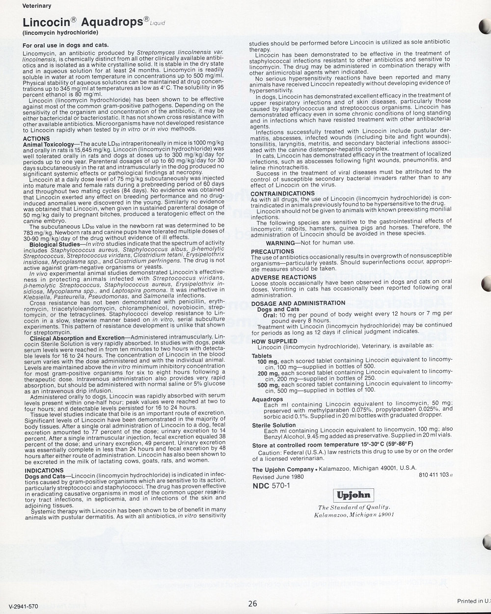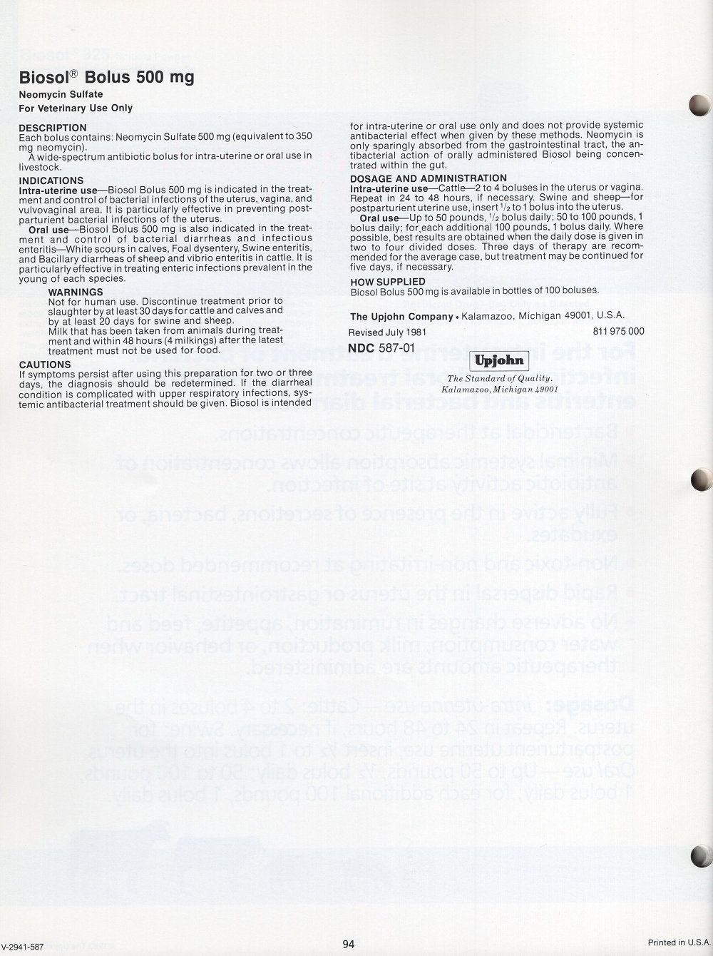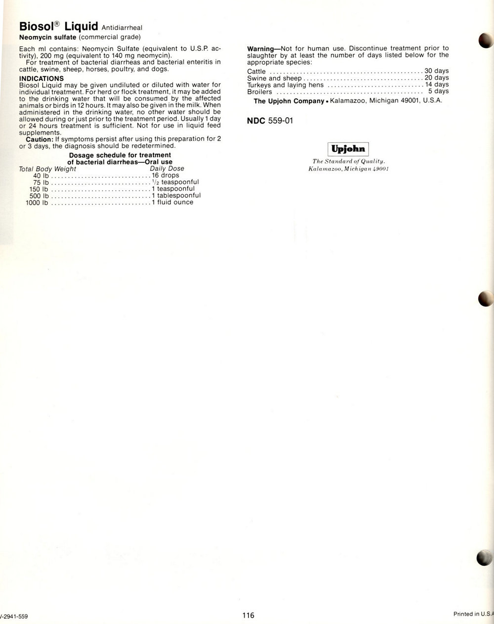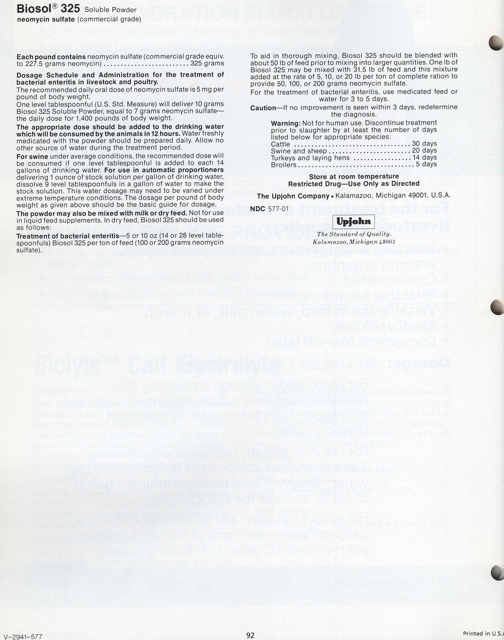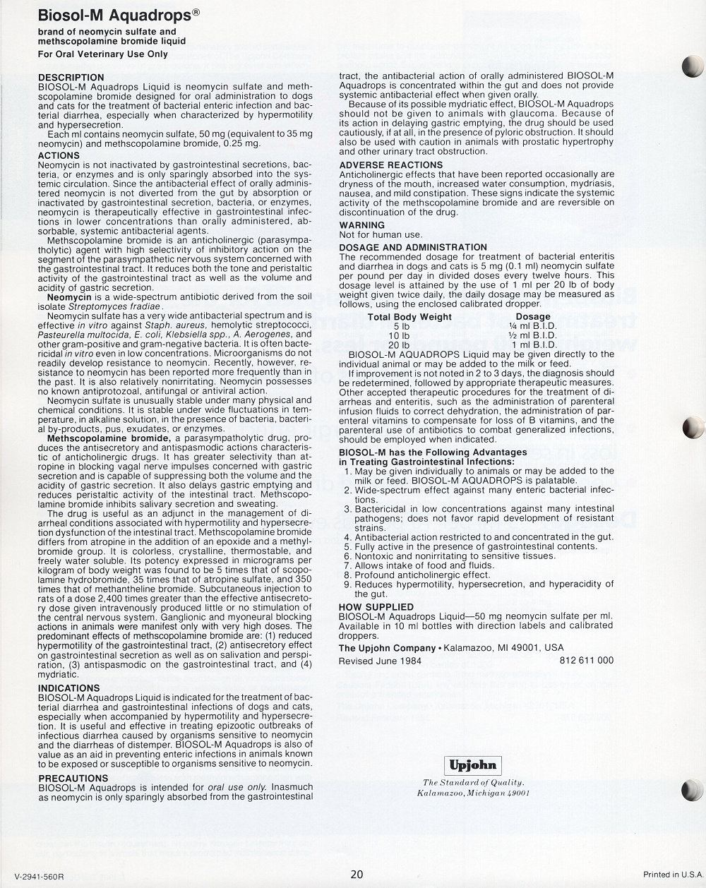 1985 Upjohn Veterinary Products Catalog