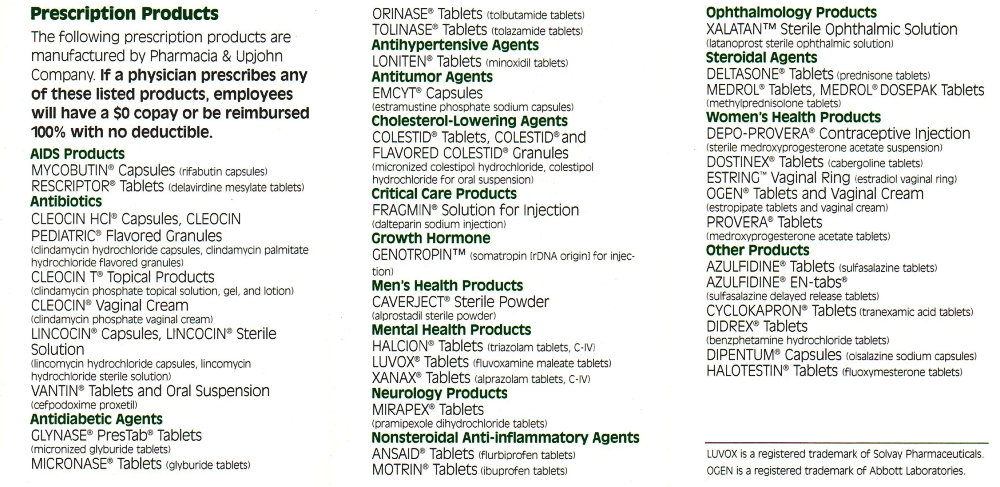 This 1998 Pharmacia & Upjohn handout for outpatient products is in the collection of Carol Orris.